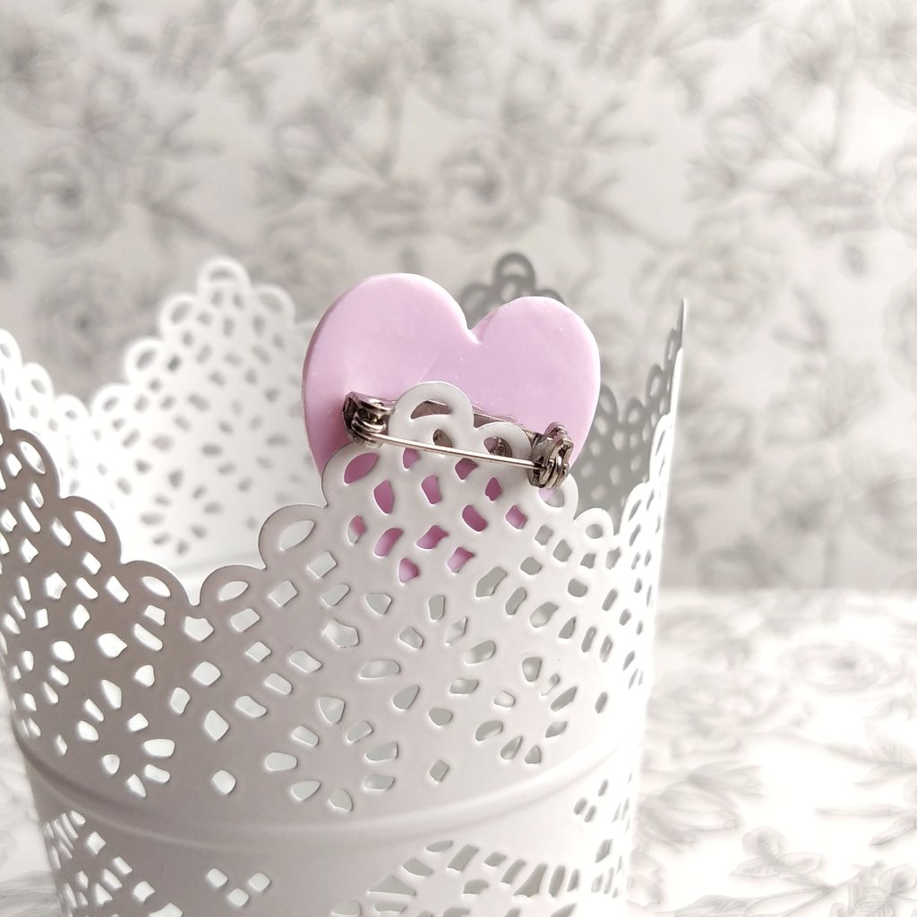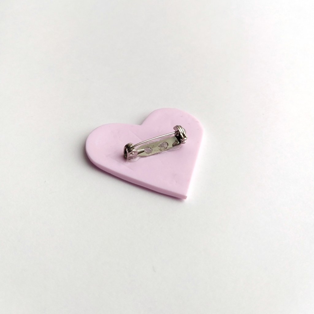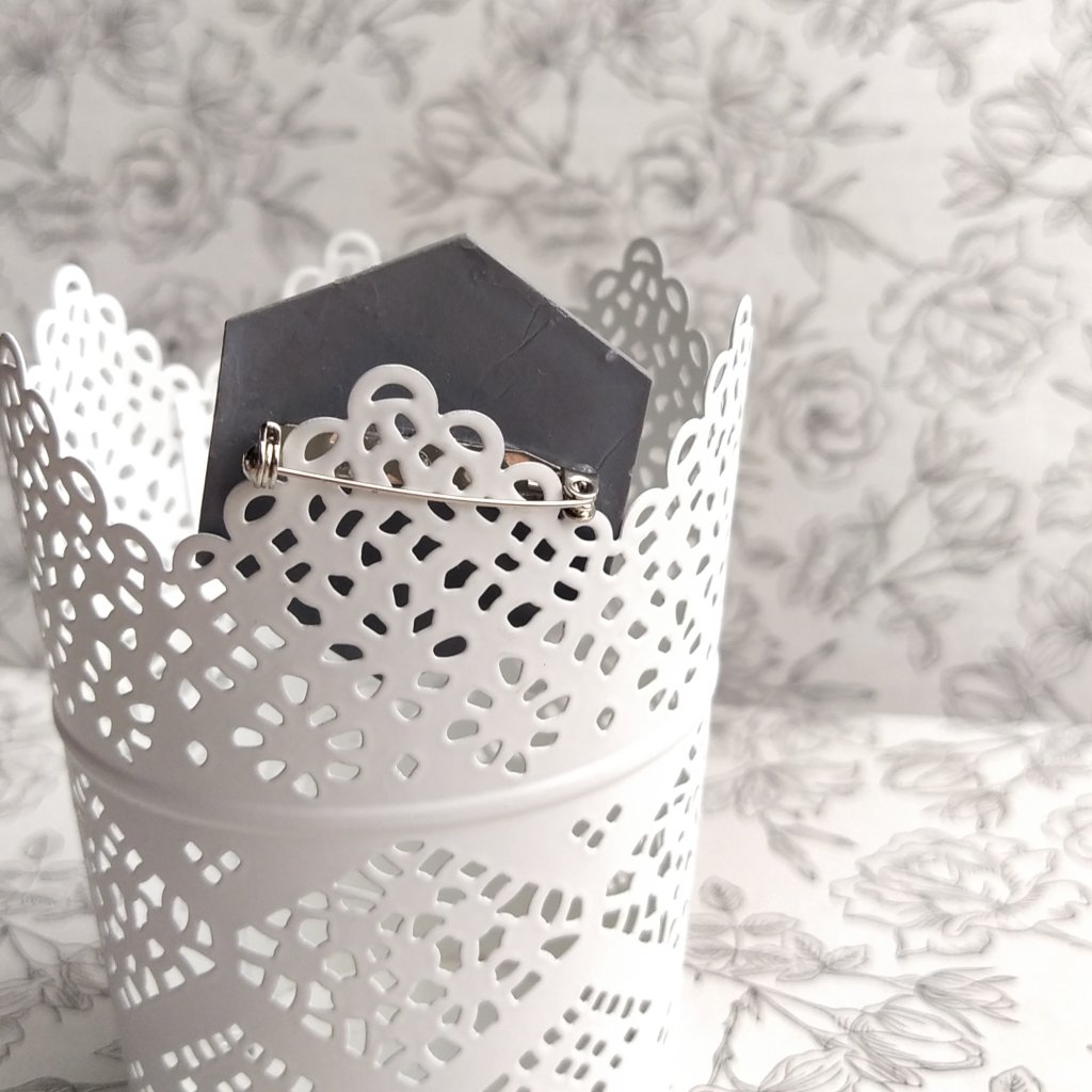Brož je vyrobená z polymerové hmoty s můstkem z bižuterního kovu stříbrné barvy.
