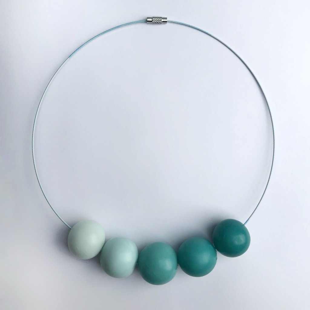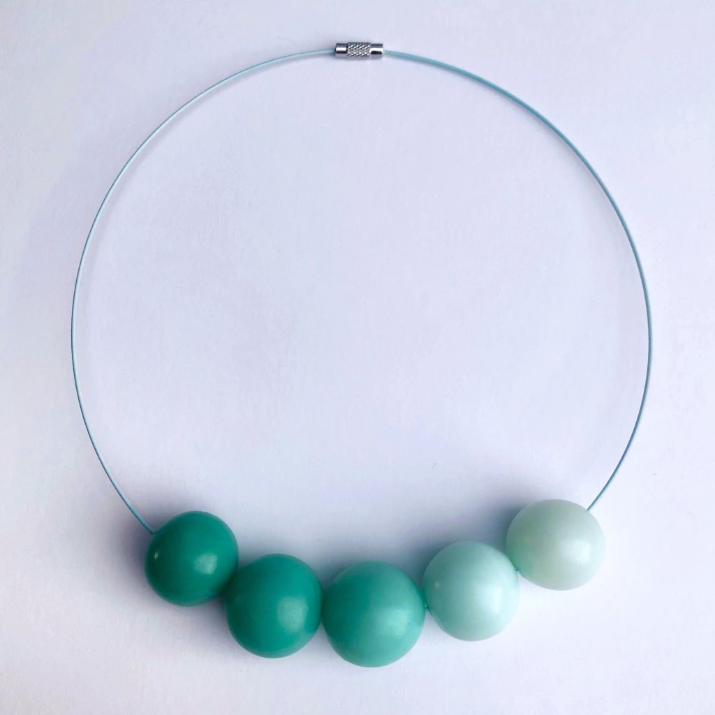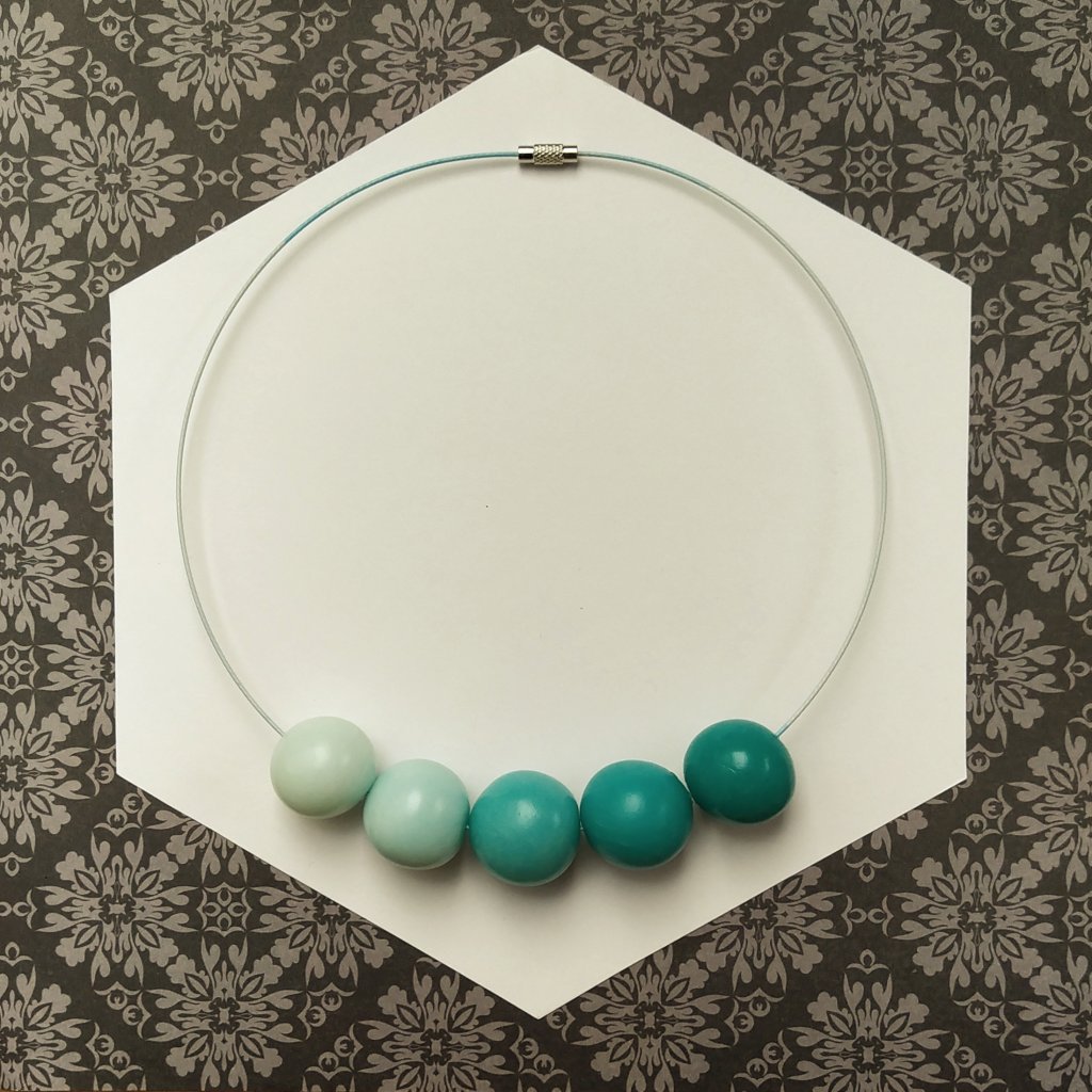 Náhrdelník v tyrkysových odstínech z korálků z polymerové hmoty.