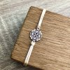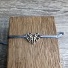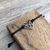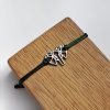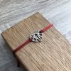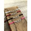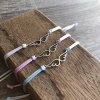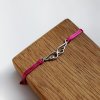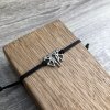 Náramek je vyrobený ze saténové šňůry, díky speciálnímu uzlu ho lze snadno nandávat a sundávat na jakoukoli velikost zápěstí.