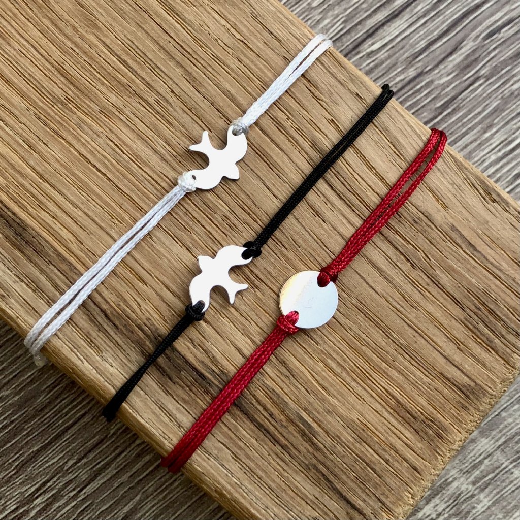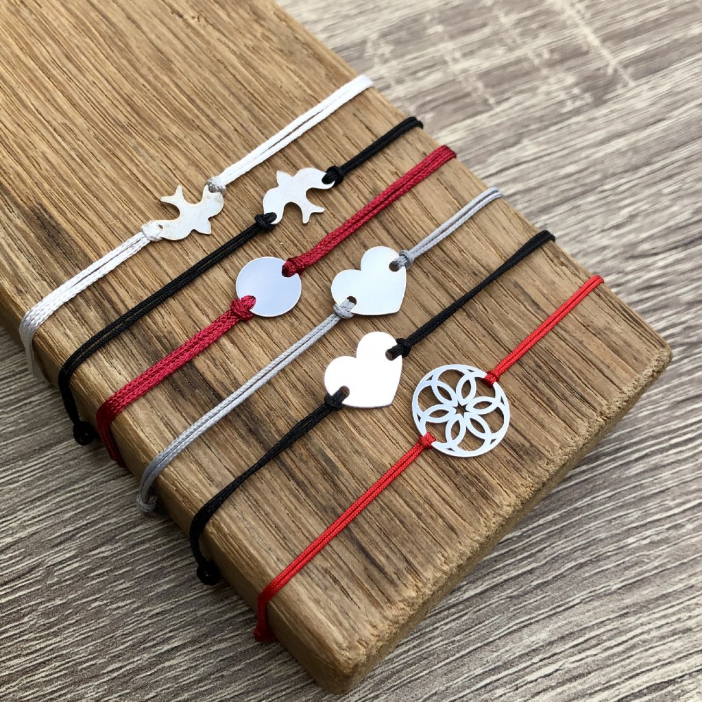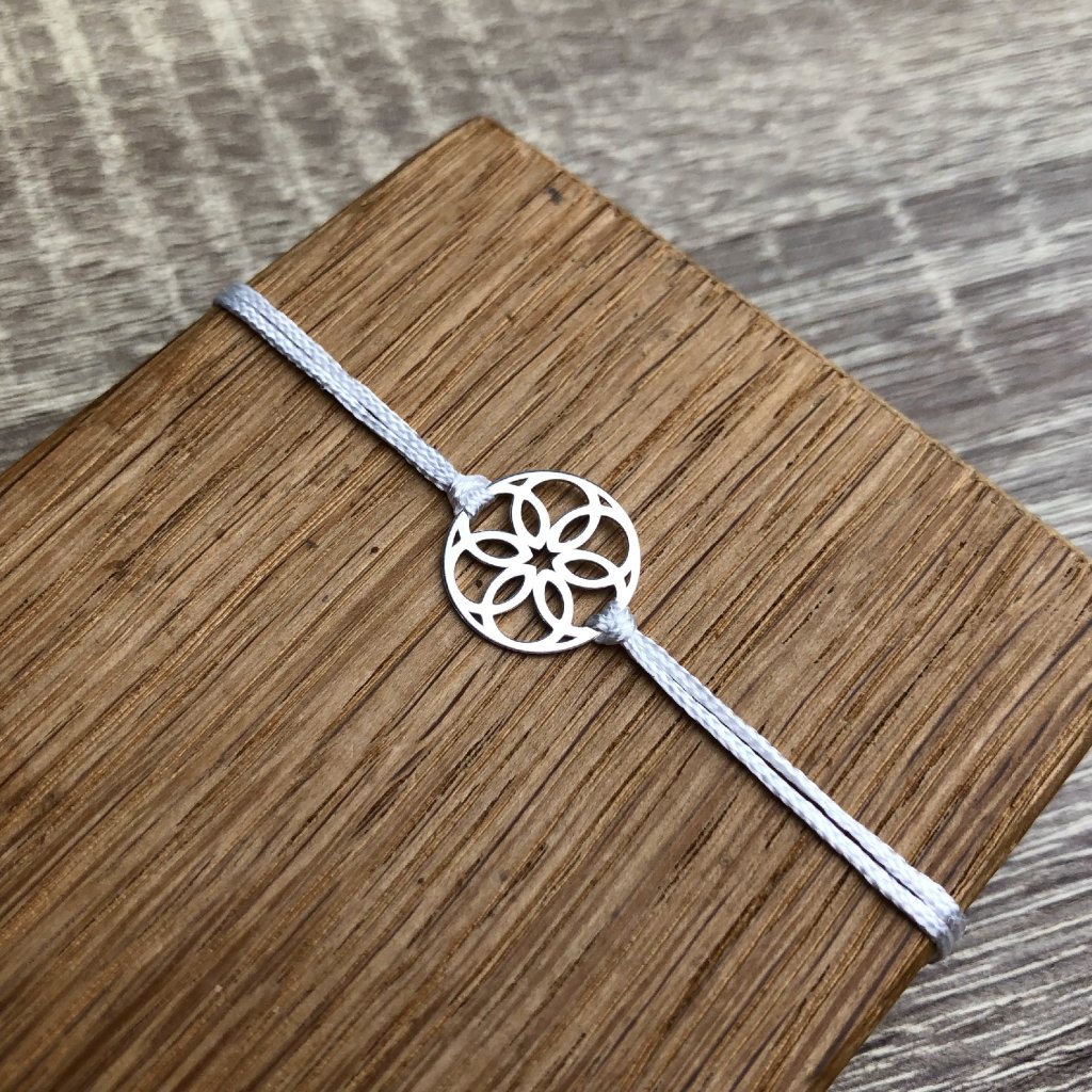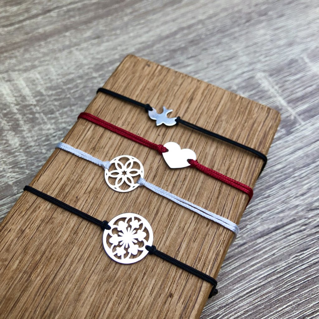 Náramek je vyrobený z nylonové šňůry, Ag925 komponentu, díky speciálnímu uzlu ho lze snadno nandávat a sundávat na jakoukoli velikost zápěstí.